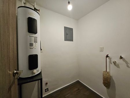 Departamento de dos pisos distribuido en sala, comedor, cocina abierta, dos recamaras con baño y closet empotrado, baño de visitas, roof garden comun, area de lavaderos en el edificio, un estacionamiento, bodega, cuarto de tendido, recepcion en el edificio y seguridad con circuito de vigilancia privado. A lo largo del recorrido podramos apreciar el estilo arquitectonico moderno que ofrece el departamento, con, acabados y colores que brindan un ambiente iluminado por luz natural y un estilo enfocado en el hogar.